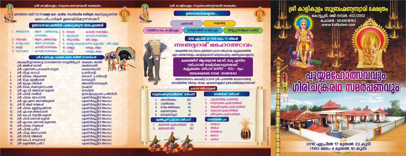 ഏപ്രില് 23 : പൂയമഹോത്സവം